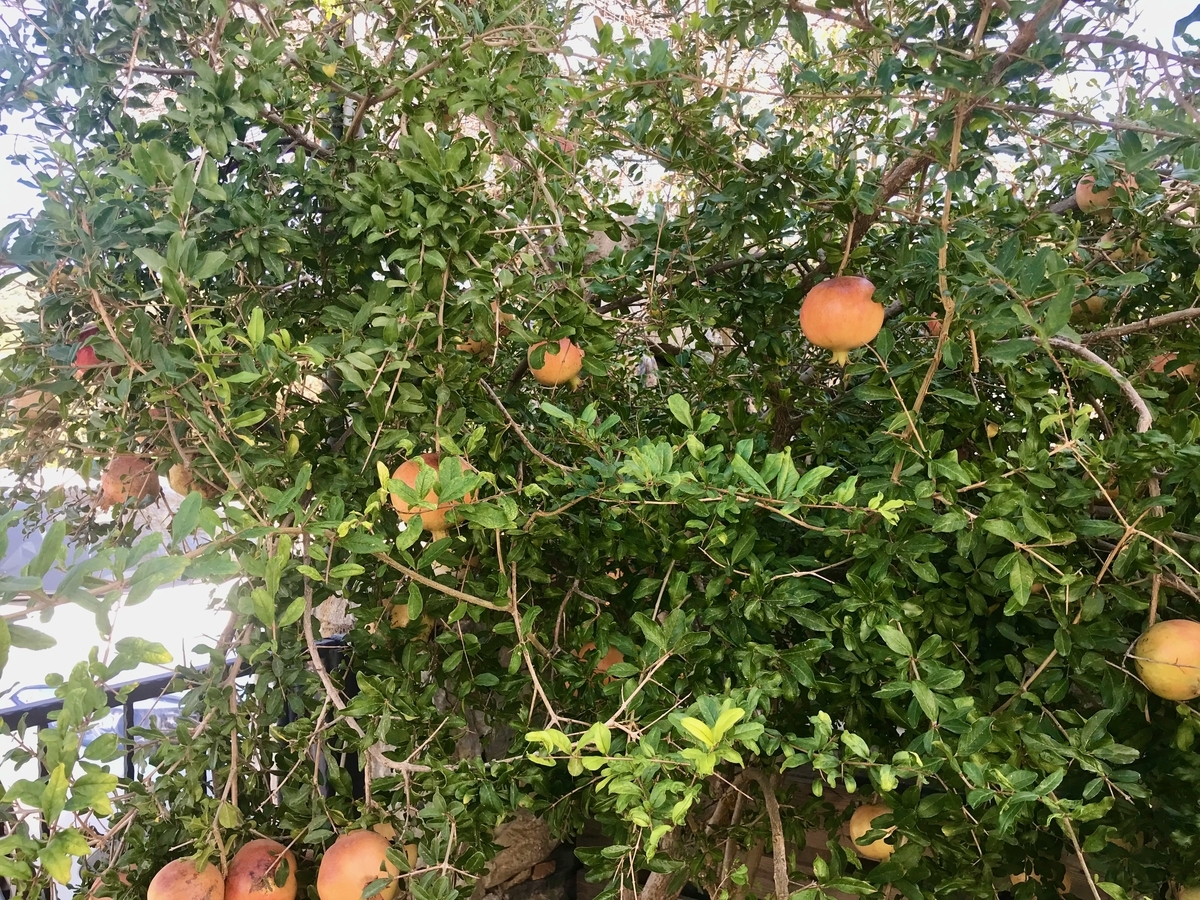 柑橘系の果樹に加えて、ザクロの木もたくさん見かけます。