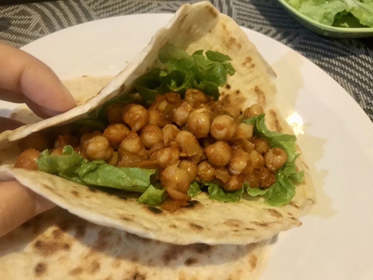 缶詰のひよこ豆をトマトペーストで味付け。