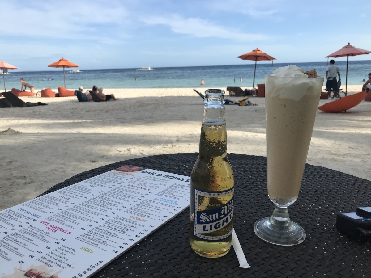 最後にフィリピン産のビール、サンミゲルライトとピーナッツ入りのシェイクを注文!