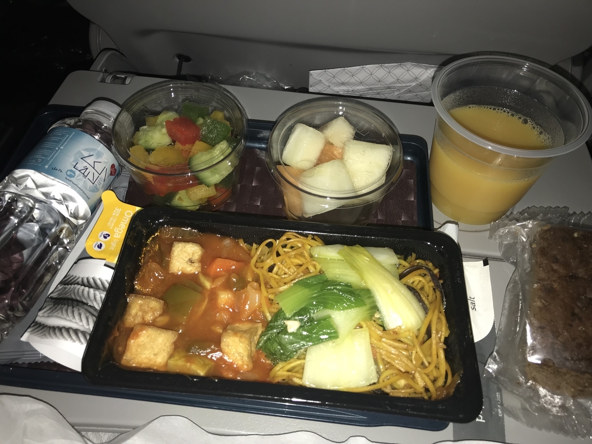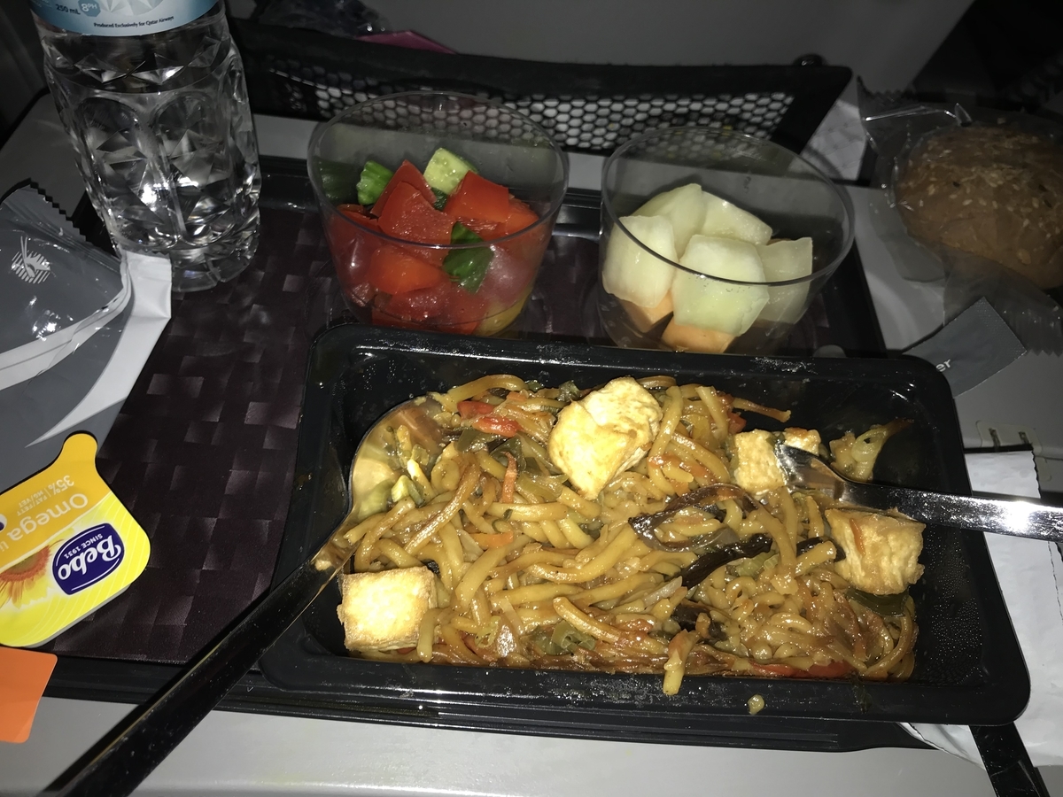 私は事前に、カタール航空のサイトからヴィーガンミールを選択していたので