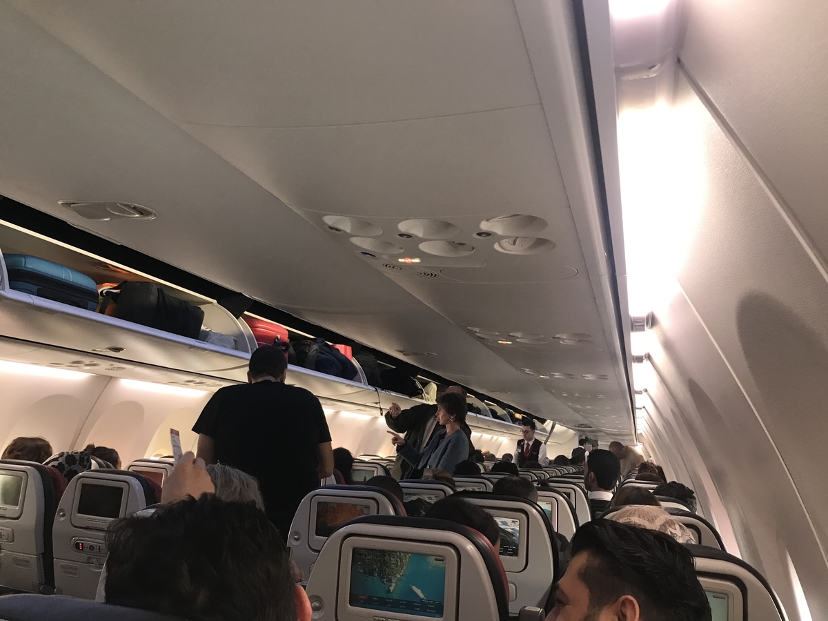 エコノミーを見渡す限り、ほぼ空席はなく満席に近い状態でした。