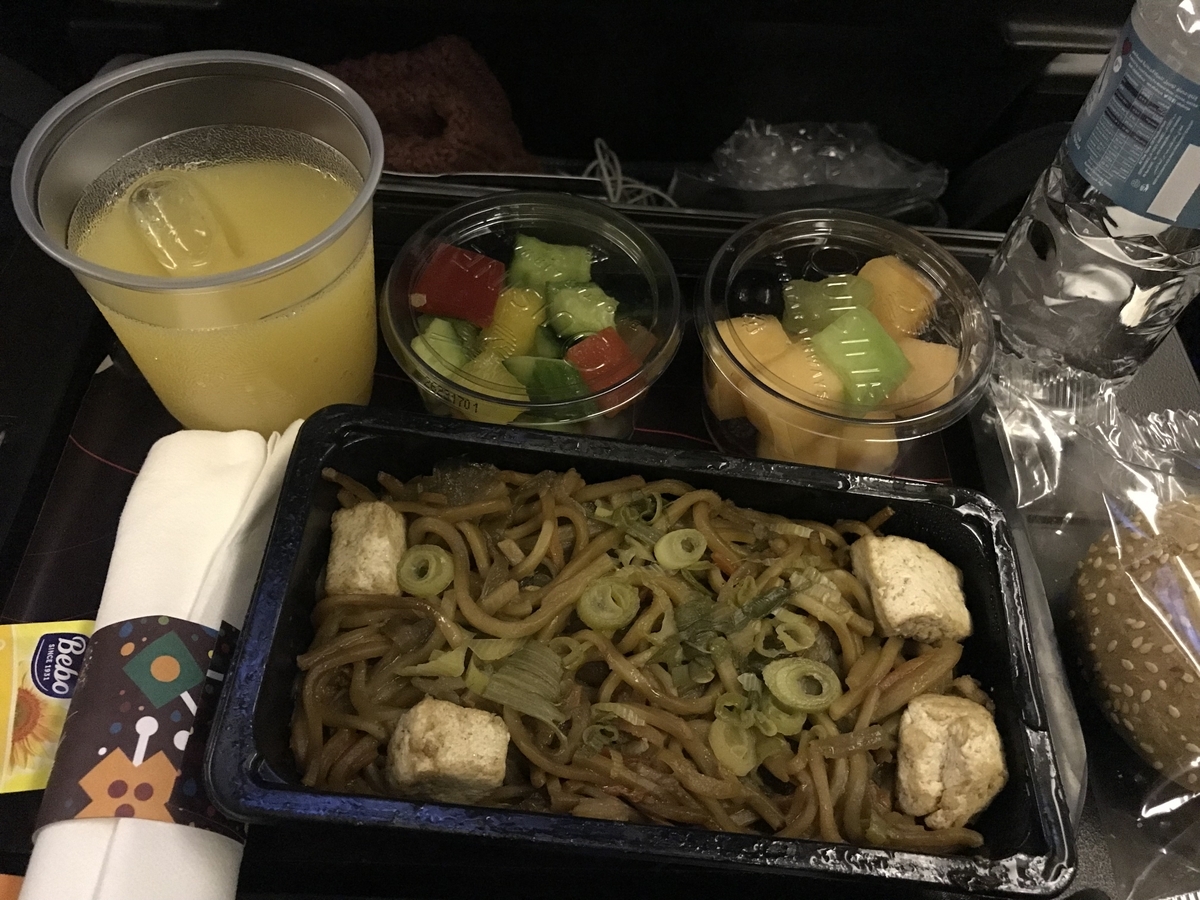 フライト開始1時間後くらいに、食事・ドリンクサービスが一緒にきました。