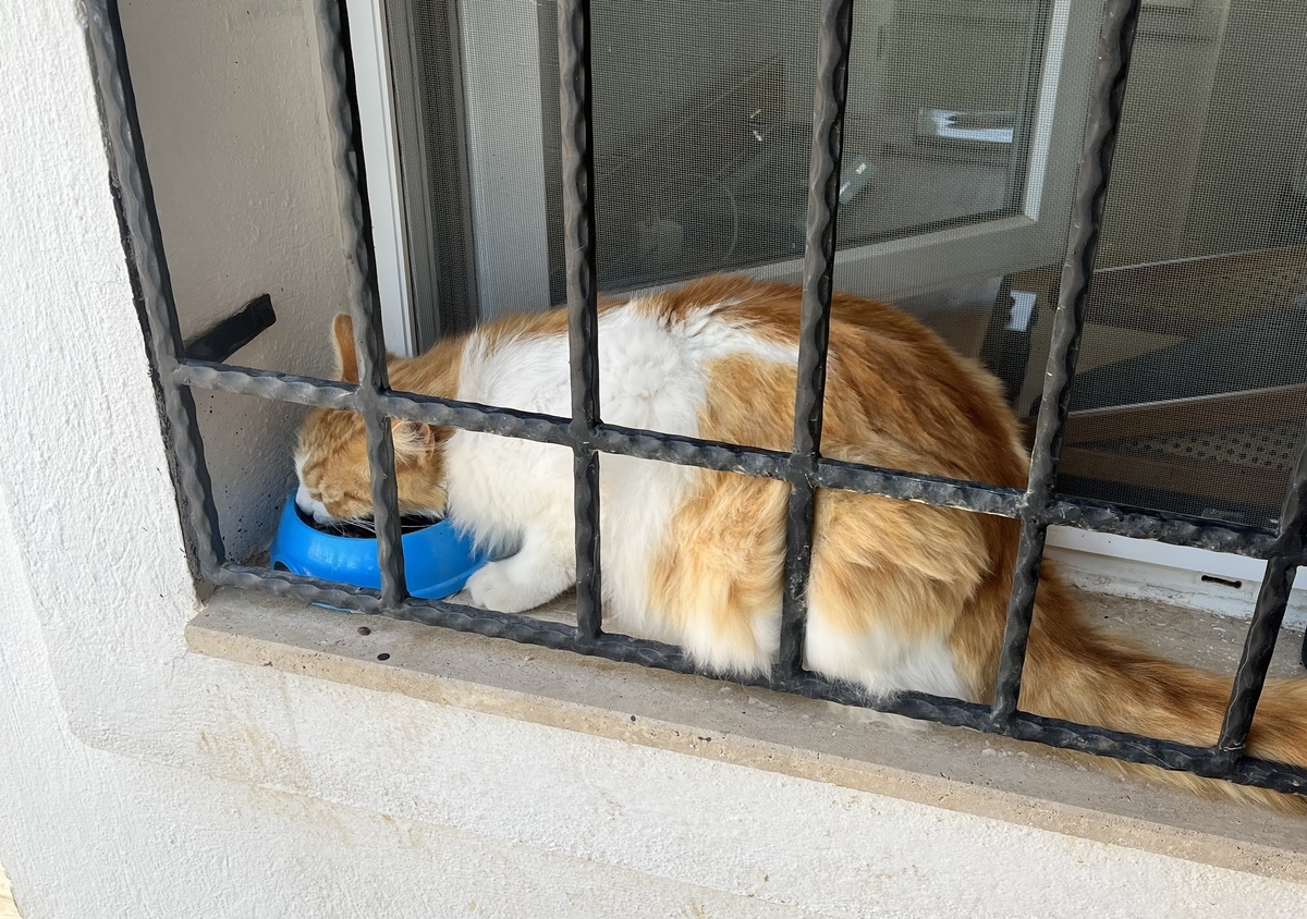 毎朝、テスラが朝ごはんを食べにきてくれるので、